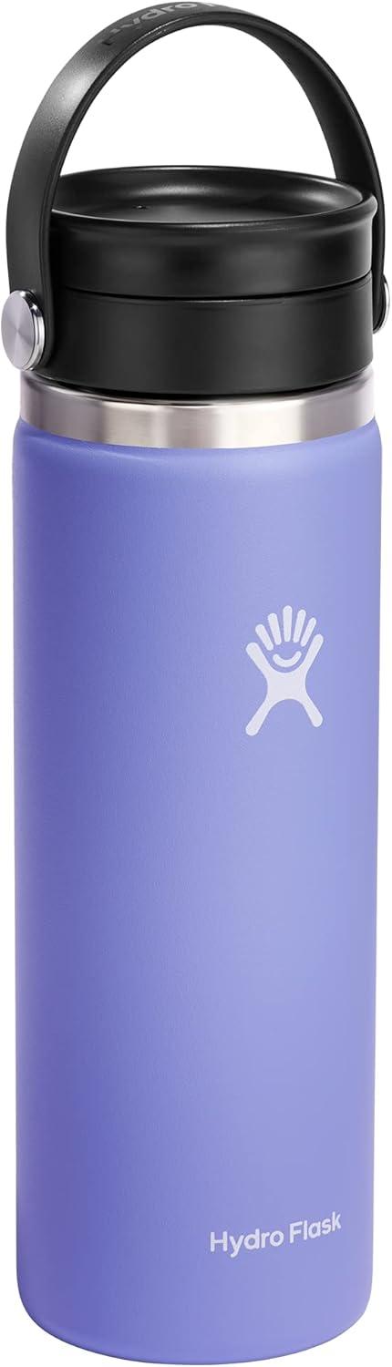 20 OZ BEACHPLUM PURPLE FLEX SIP BOTTLE: Designed for hot drinks, Hydro Flask's insulated Wide Mouth water bottle with Flex Sip Lid is cupholder compatible and leakproof. This insulated, stainless steel bottle is ideal for coffee or tea, keeping hot drinks hot and cold drinks cold.