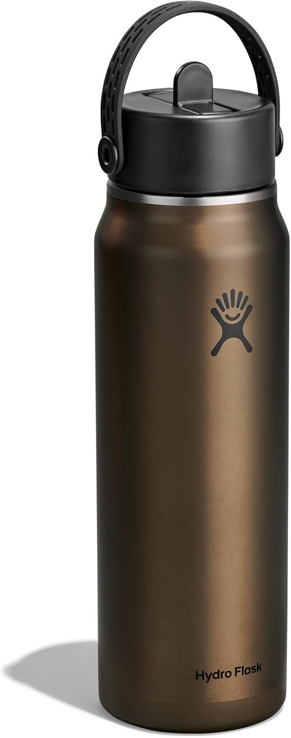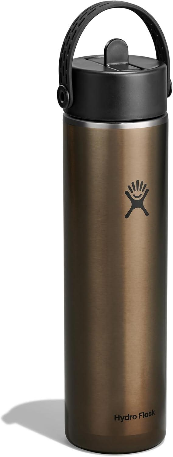 Hydro Flask 24 Oz Lightweight Wide Straw Lid – Insulated Stainless Steel Water Bottle – Hiking, Commuting Garnet Red(OBSIDIAN)