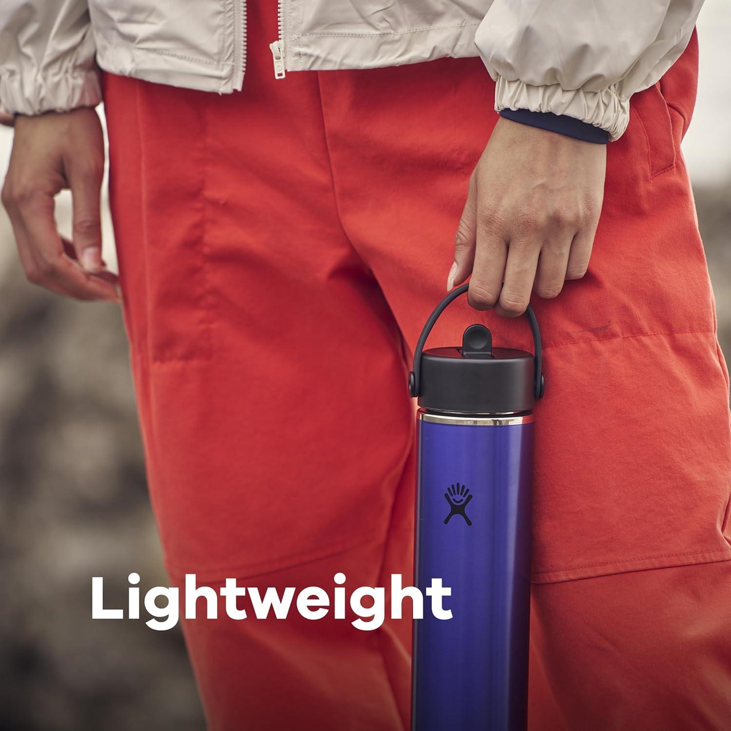 24 OZ LIGHTWEIGHT GARNET RED BOTTLE: A lightweight stainless steel insulated water bottle with the Hydro Flask insulation and durability you love. Fits easily into bags and totes while keeping drinks cold up to 24 hours. With a comfortable, flexible handle, it's easy to grab and take anywhere.