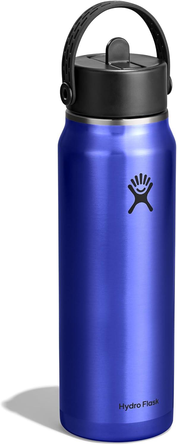 Hydro Flask 24 Oz Lightweight Wide Straw Lid – Insulated Stainless Steel Water Bottle – Hiking, Commuting Garnet Red(Sapphire Blue)