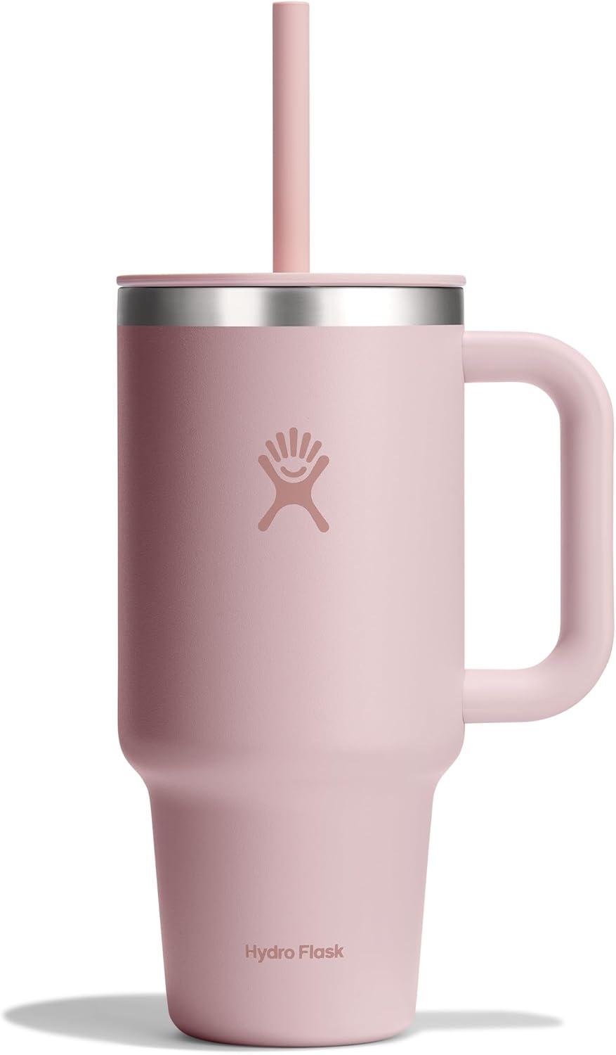 The insulated Hydro Flask 40 oz Travel Tumbler cup is here to hydrate more and refill less. The insulation keeps drinks cold for hours, and the durable handle makes it easy to take along anywhere. The 40 oz size stainless steel tumbler bottle can go anywhere, even fitting most cupholders. Cold stays cold, and the flexible straw is easy to sip any which way.