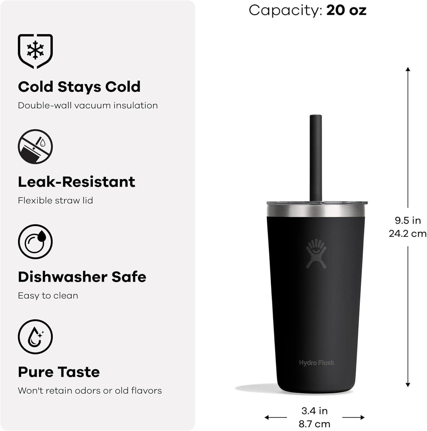 20 OZ AGAVE GREEN STRAW TUMBLER: The 20 oz Hydro Flask All Around Tumbler with Straw Lid is ready for smoothies to lemonade, and everything in between, keeping drinks cold for hours. The leak-resistant Straw Lid keeps your favorite drink at the ready and easy to sip.
