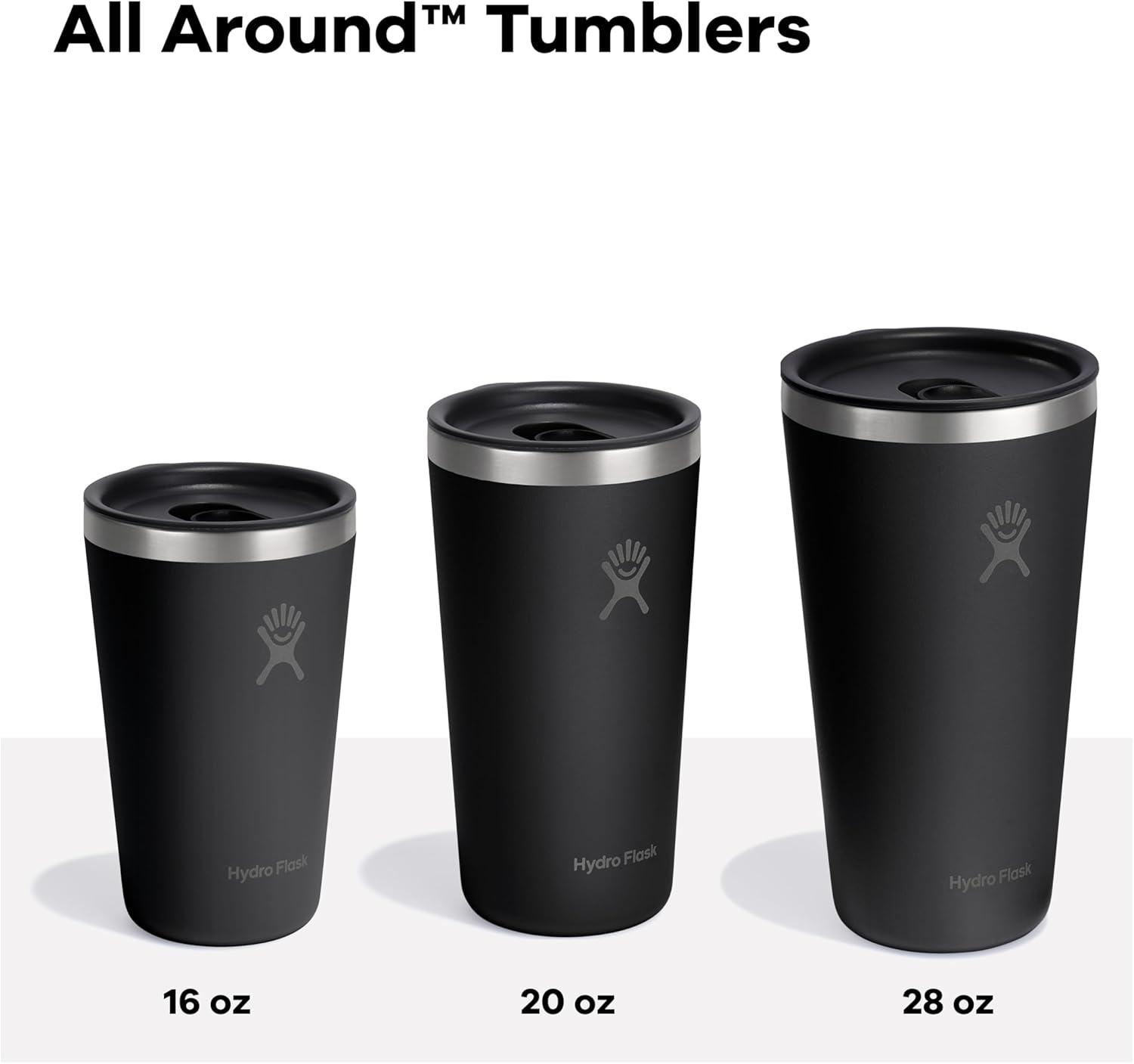 16 OZ TONAL BLACK INSULATED TUMBLER: The 16 oz All Around Tumbler is ready for morning brews or microbrews, keeping drinks cold or hot for hours. The leak-resistant lid slides snugly shut to keep splashes at bay.