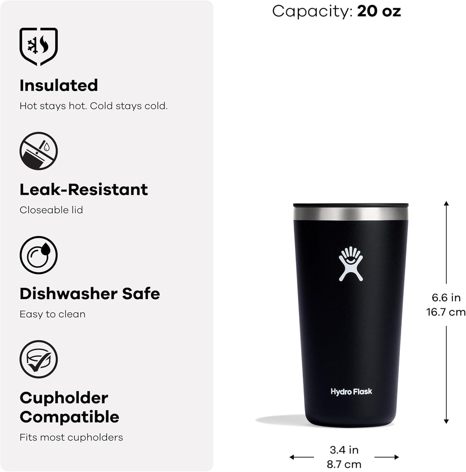 Hydro Flask All Around Tumbler Press-In Lid, Insulated Travel Mug, Stainless Steel Coffee Cup 16 Oz Tonal White(Cascade)