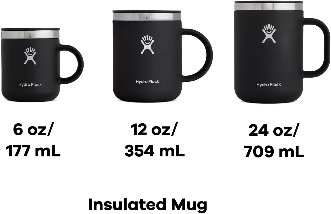 12 OZ CLOUD PINK INSULATED MUG: The Hydro Flask stainless steel insulated mug keeps drinks hot for hours. Sized for the perfect cup with a closeable, leak-resistant and splash-resistant lid.