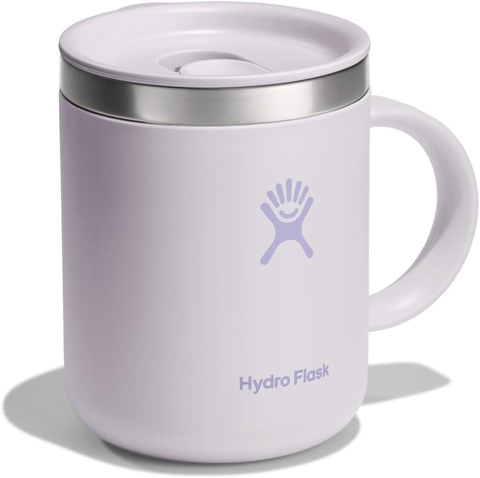12 OZ CLOUD PINK INSULATED MUG: The Hydro Flask stainless steel insulated mug keeps drinks hot for hours. Sized for the perfect cup with a closeable, leak-resistant and splash-resistant lid.