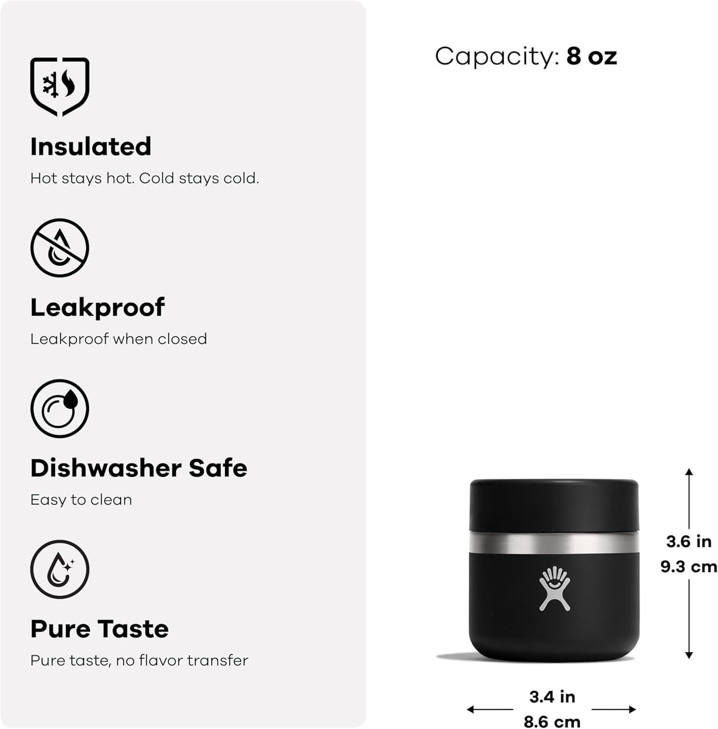Hydro Flask Food Jar – Insulated Stainless Steel, Snack Travel Container for Hot Food & Soup 28 Oz Capri Blue(Black)