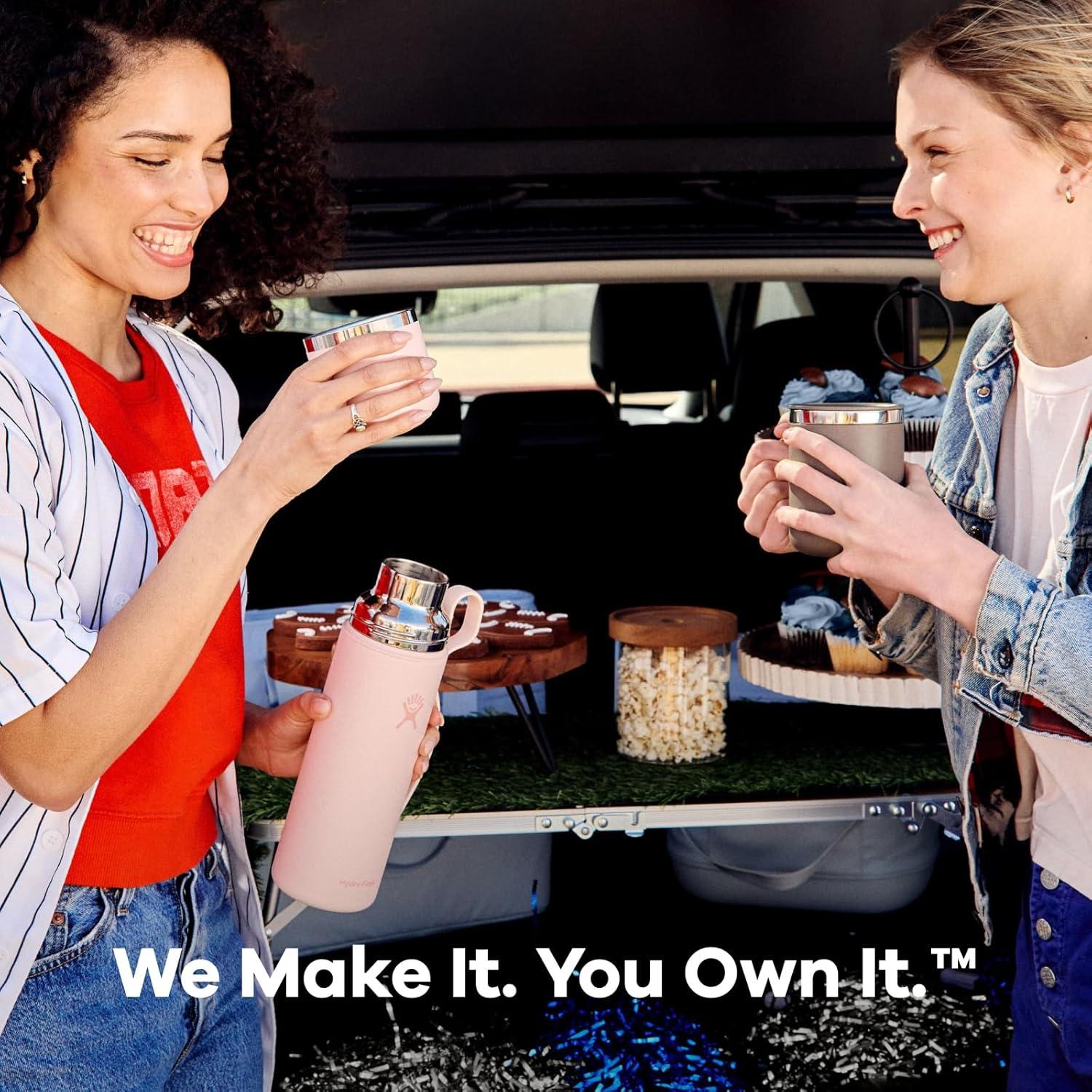 The Hydro Flask Hot Flask & Cup is the perfect thermal water bottle to use when wanting to bring along a pitcher and a way to drink it. Inspired by thermal bottles, the modern design and clean lines fit anywhere from a backpack to picnic basket, concerts to sidelines. Fill with your favorites such as hot chocolate, hot toddys, tea, coffee, water, even soup. Featuring a comfortable, very durable silicone handle, the Hot Flask & Cup is ready to grab and go. Available in two size, the 28 oz and 36 oz, both keep drinks hot (or cold) for up to 30 hours. Easy to clean, toss all parts in the dishwasher so it's ready whenever you need it.