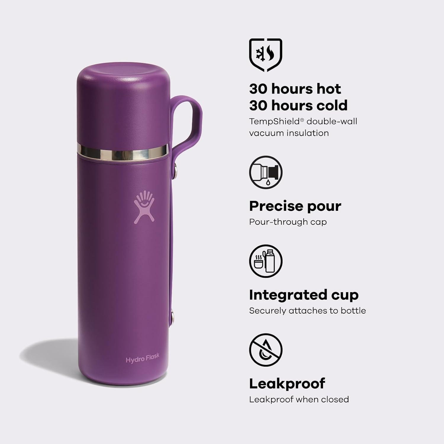 Hydro Flask Hot Flask & Cup – Insulated Stainless Steel, Hot Drink Travel Container for Coffee 36 Oz Beachplum Purple(TRILLIUM)