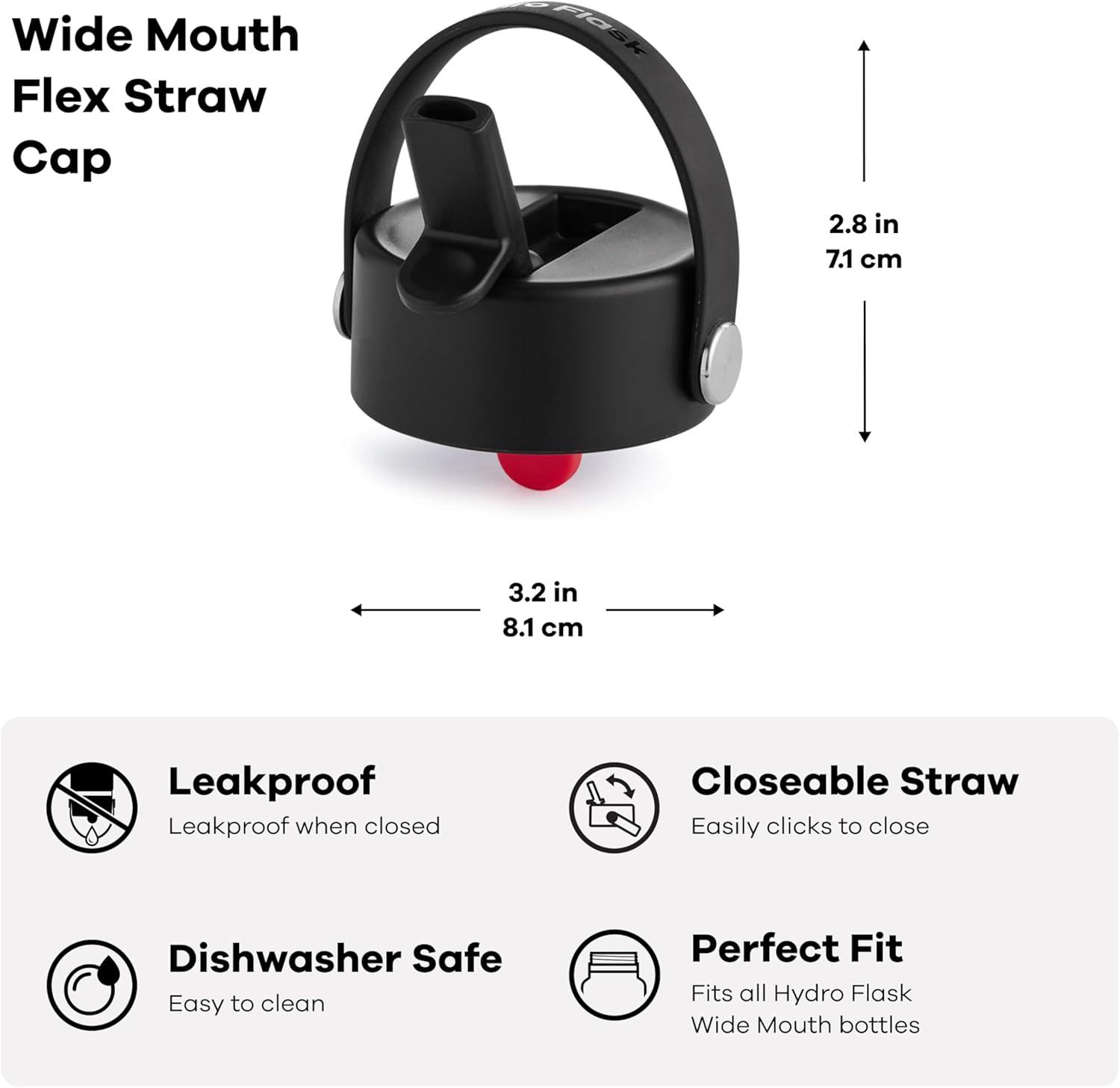 CUT TO FIT: The Flex Straw lid for bottles includes two straws that are easy to trim to fit your Wide Mouth Hydro Flask bottle. A trim ruler is included for easy measuring.