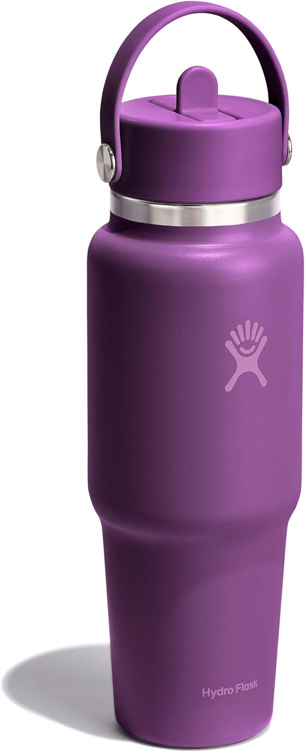 The Travel Bottle is the best of both worlds—leakproof, 24 hours cold and cupholder compatible. Your favorite insulated 40 oz Hydro Flask bottle, now with a cupholder-fit design. Drinks stay cold for 24 hours, and the Flex Straw Cap makes it easy to sip while keeping your eyes on the road and your hands on the wheel. The insulated bottle easily fits ice cubes and is dishwasher safe. Designed for seamless cupholder fit, it's right at home on the open road.