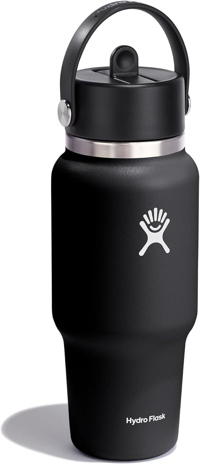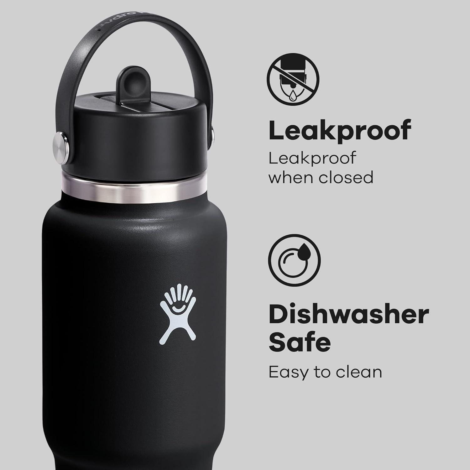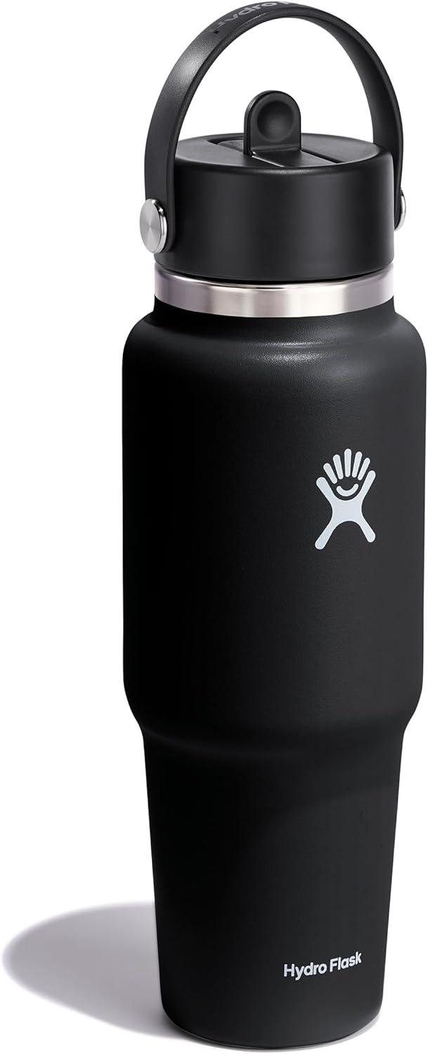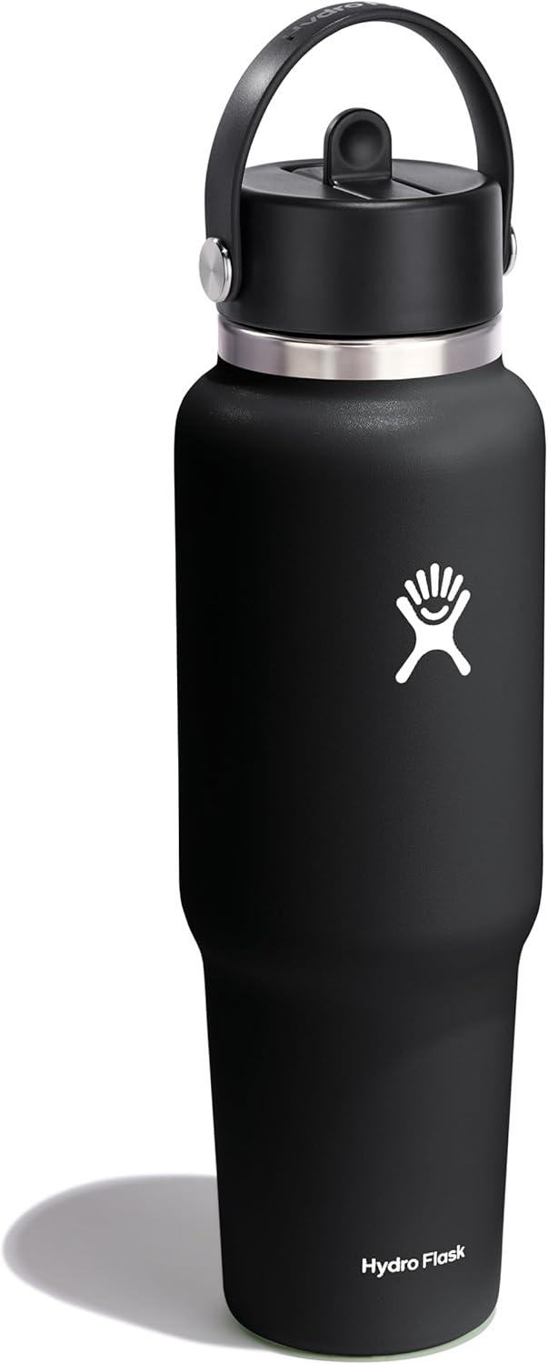 Hydro Flask Travel Water Bottle – Insulated Stainless Steel – Wide Straw Lid, Non Spill, Leakproof in 40 Oz Capri Blue(Black)