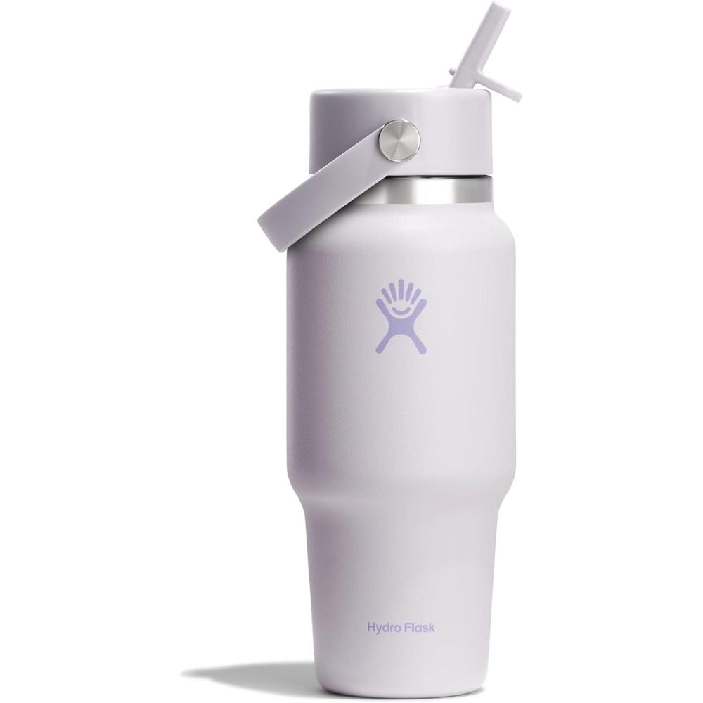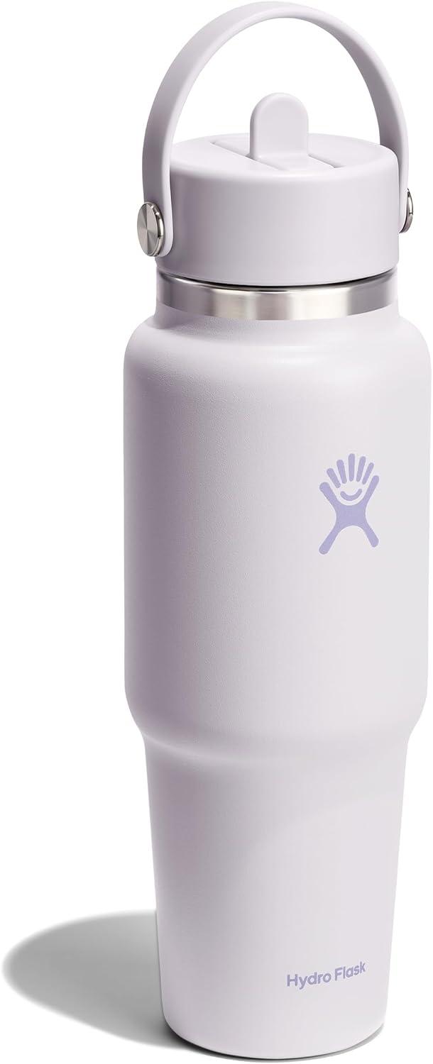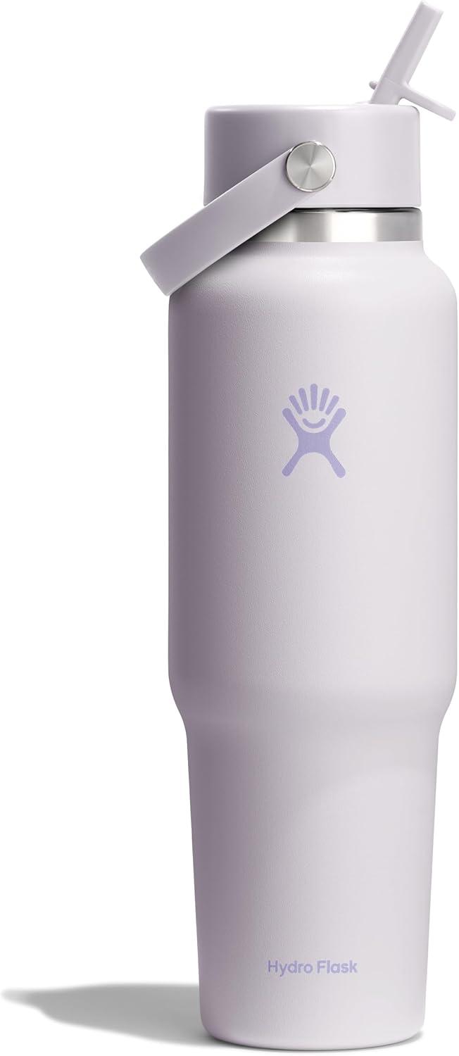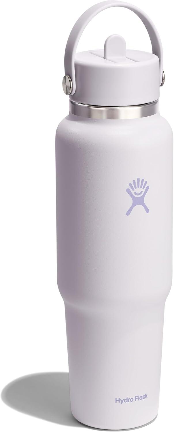 Hydro Flask Travel Water Bottle – Insulated Stainless Steel – Wide Straw Lid, Non Spill, Leakproof in 40 Oz Capri Blue(CLOUD PINK)