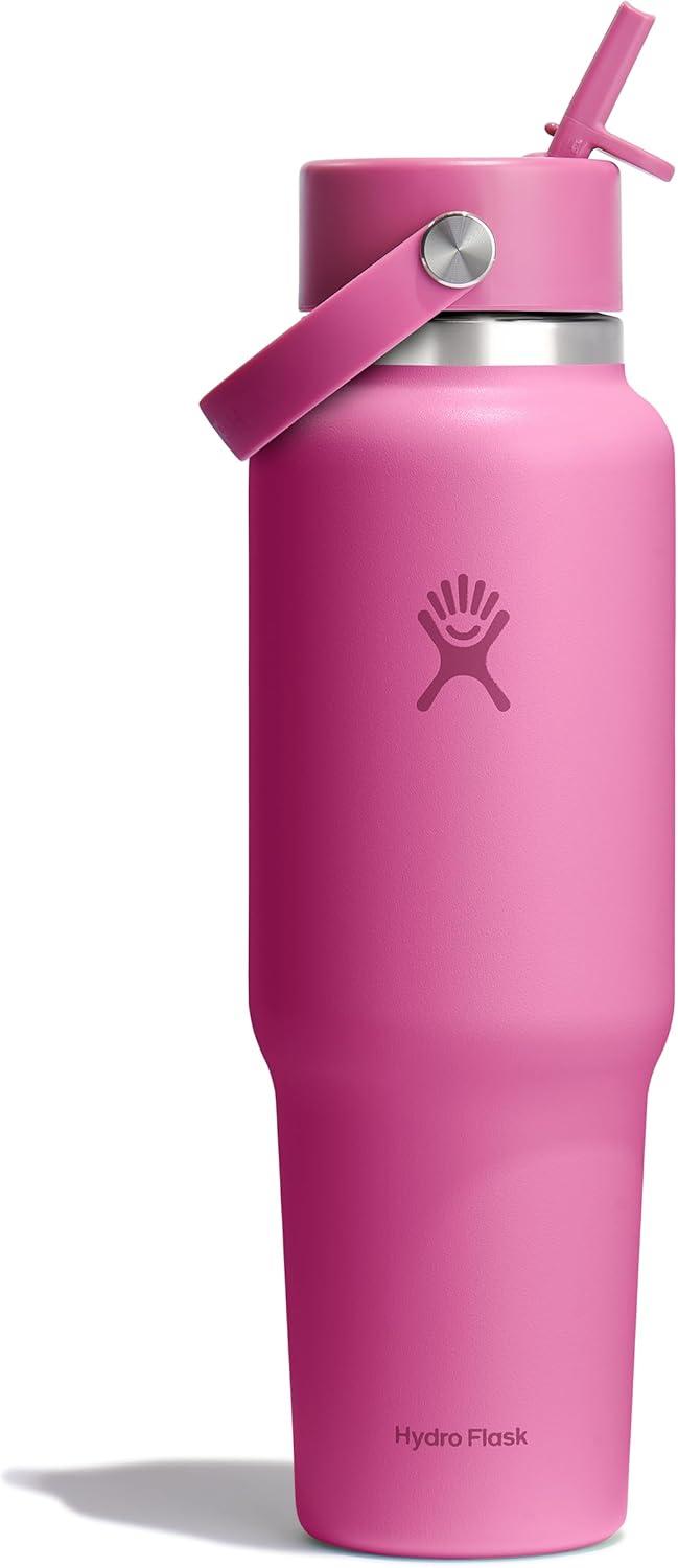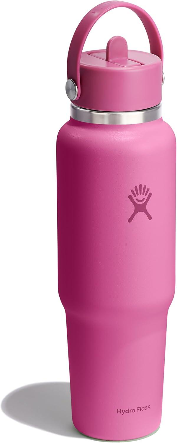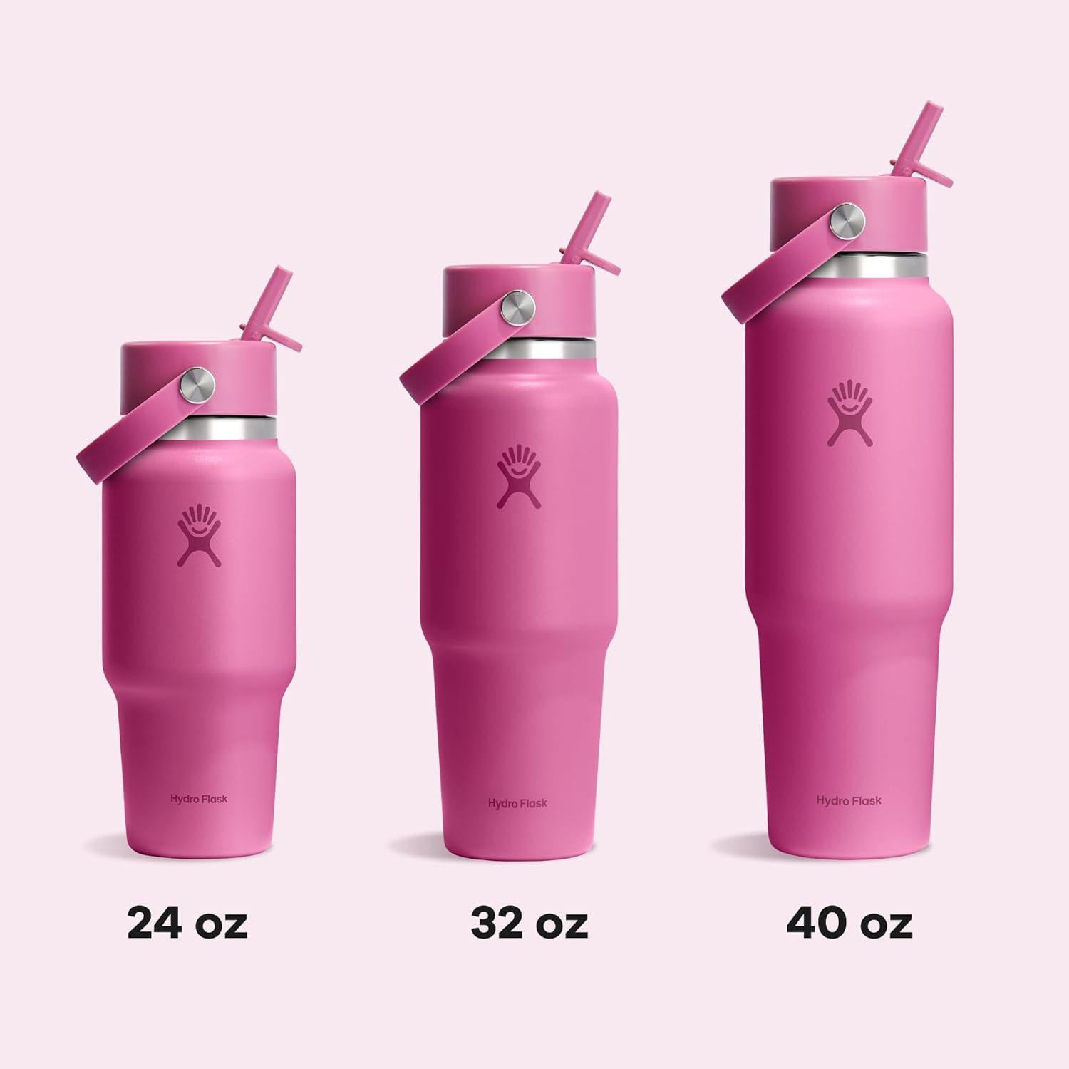 Hydro Flask Travel Water Bottle – Insulated Stainless Steel – Wide Straw Lid, Non Spill, Leakproof in 40 Oz Capri Blue(POPSTAR PINK)