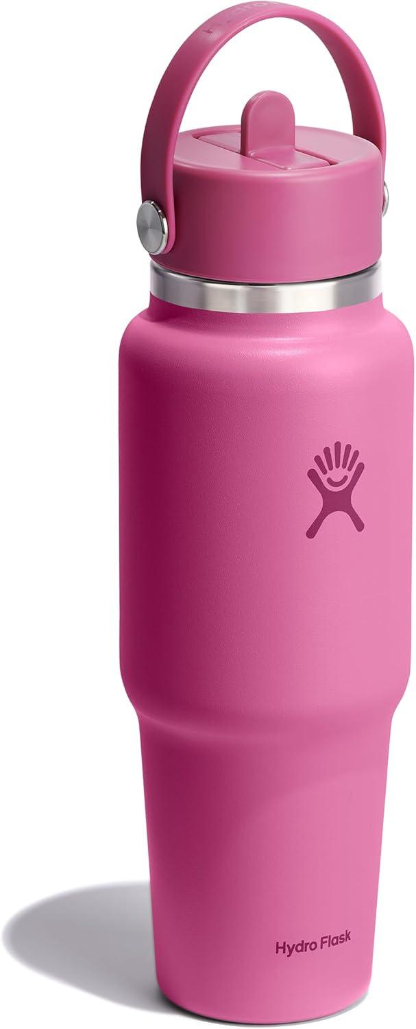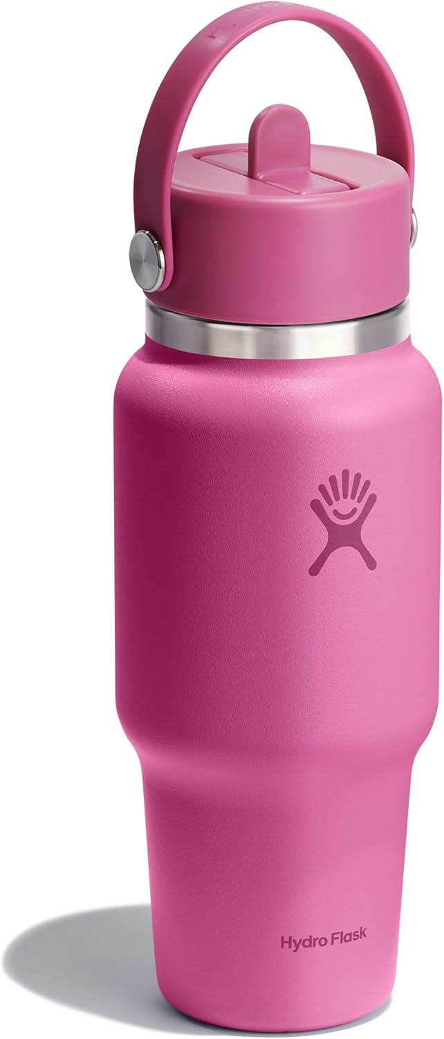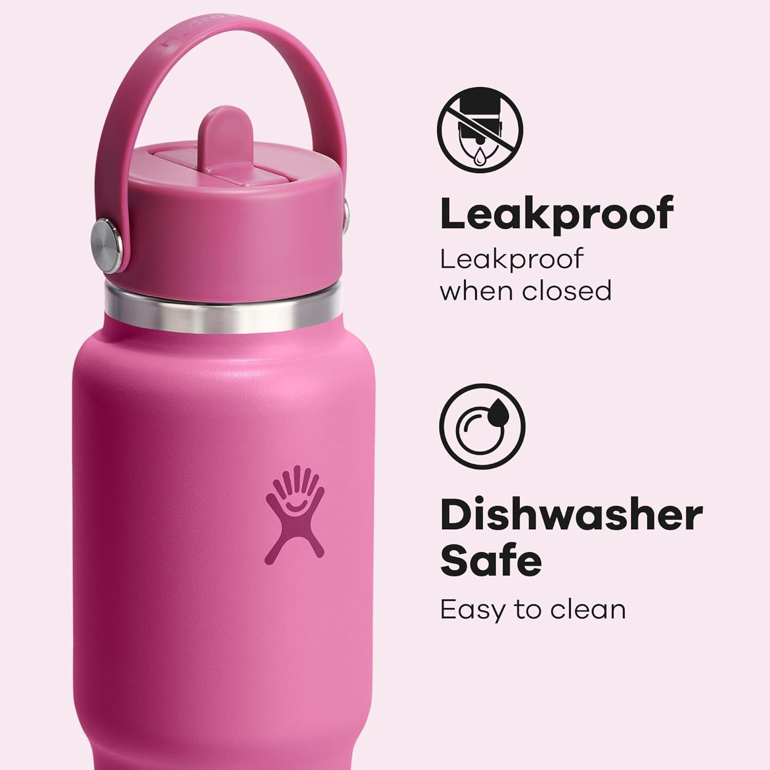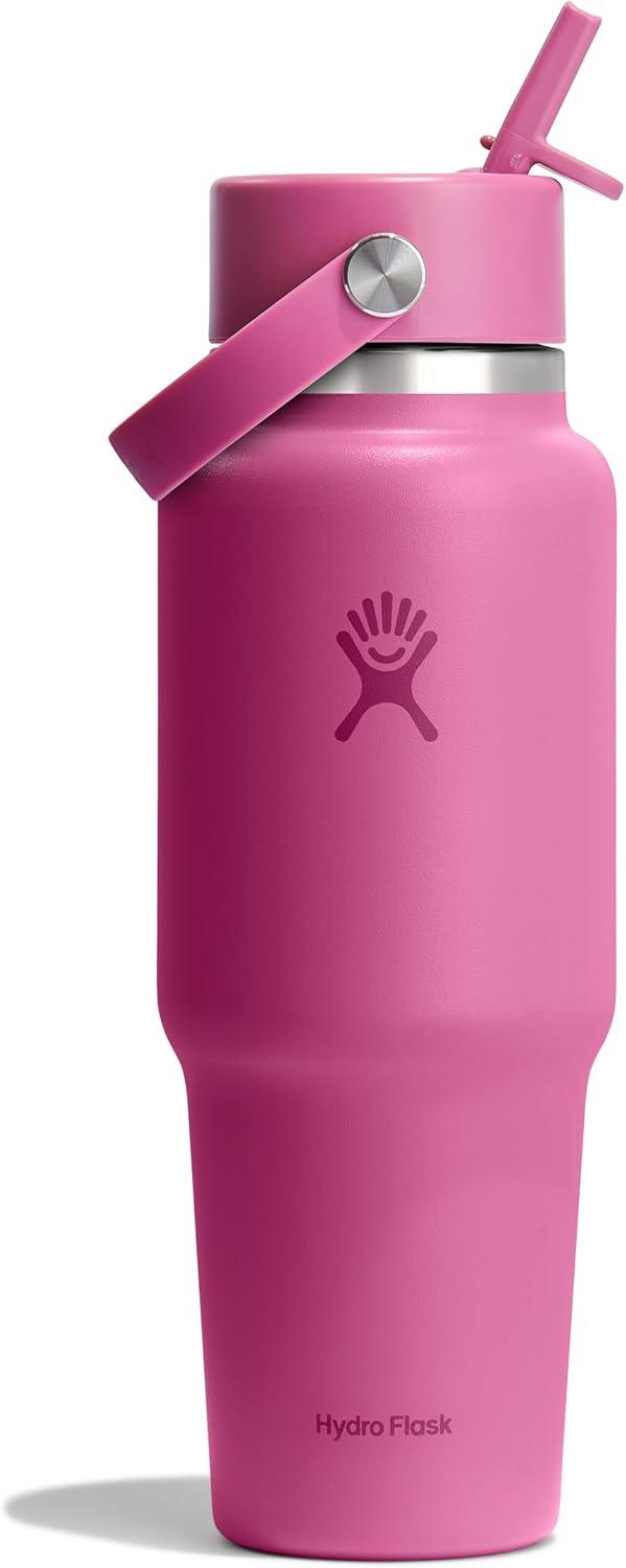 Hydro Flask Travel Water Bottle – Insulated Stainless Steel – Wide Straw Lid, Non Spill, Leakproof in 40 Oz Capri Blue(POPSTAR PINK)