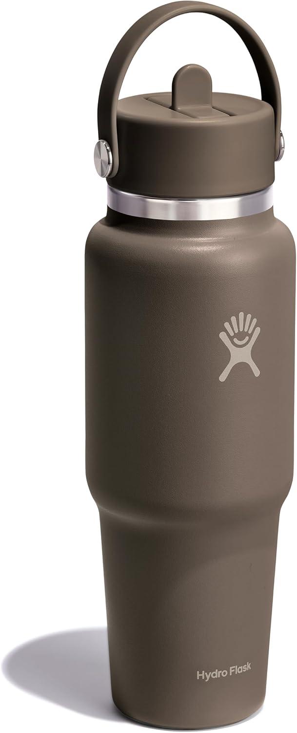 Hydro Flask Travel Water Bottle – Insulated Stainless Steel – Wide Straw Lid, Non Spill, Leakproof in 40 Oz Capri Blue(SHALE GRAY)