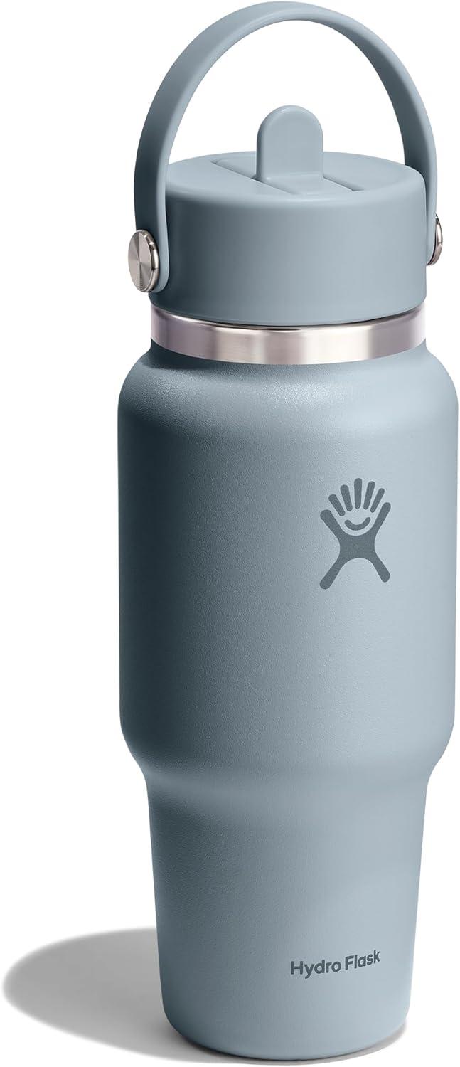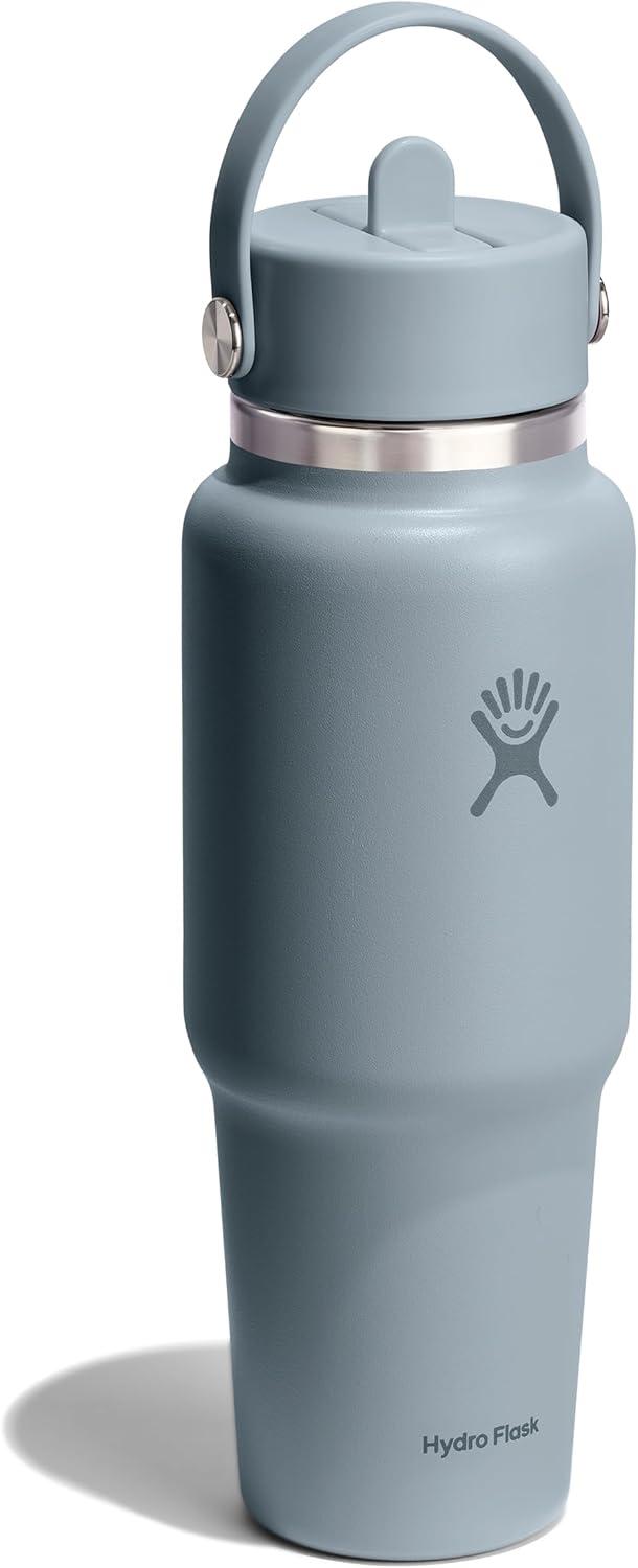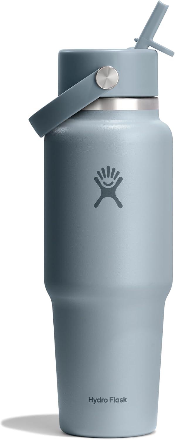Hydro Flask Travel Water Bottle – Insulated Stainless Steel – Wide Straw Lid, Non Spill, Leakproof in 40 Oz Capri Blue(SHALE GRAY)