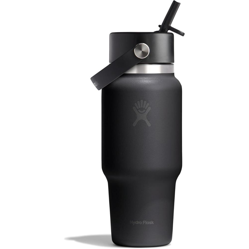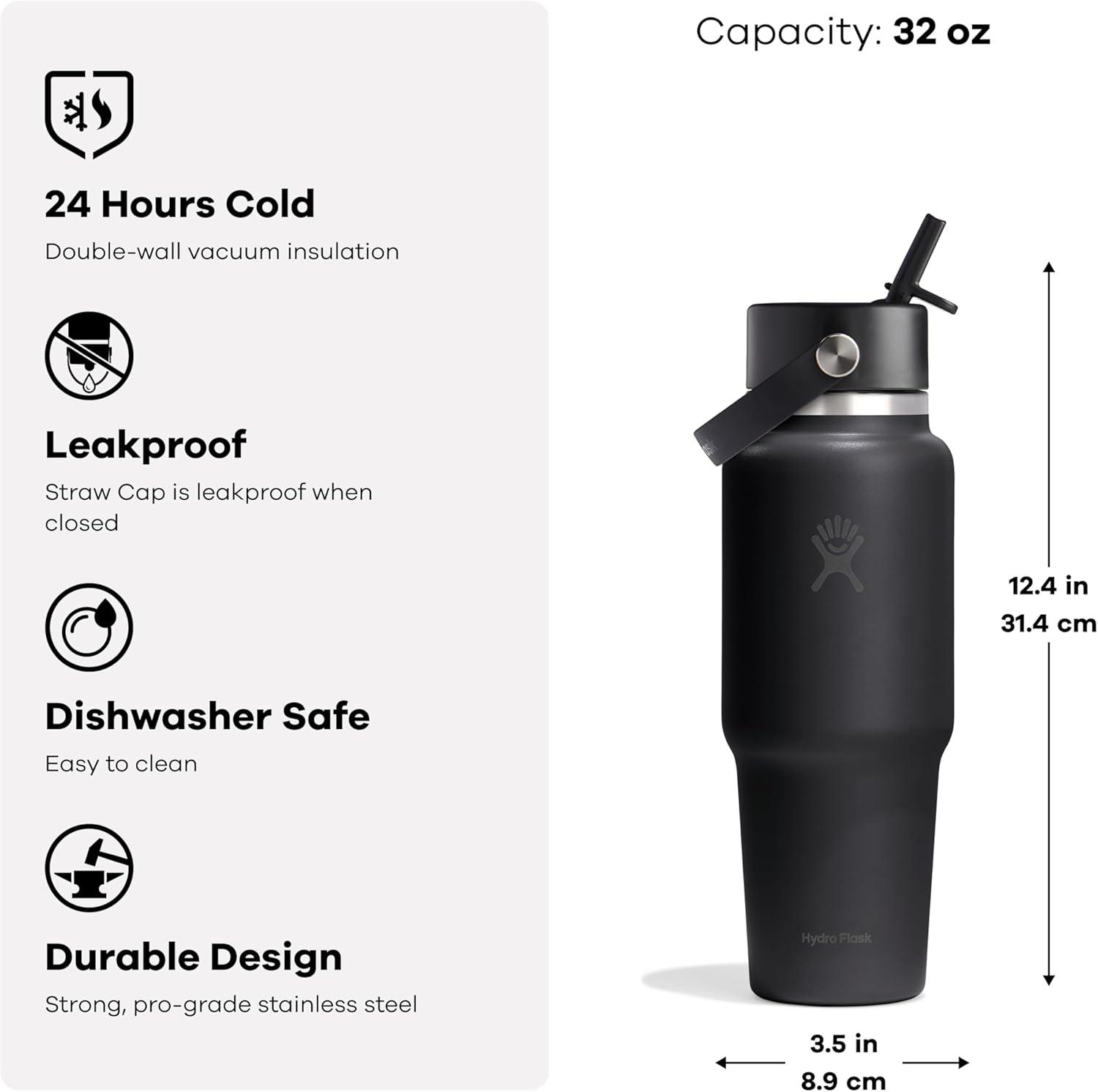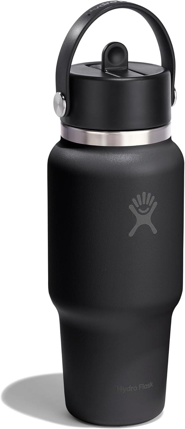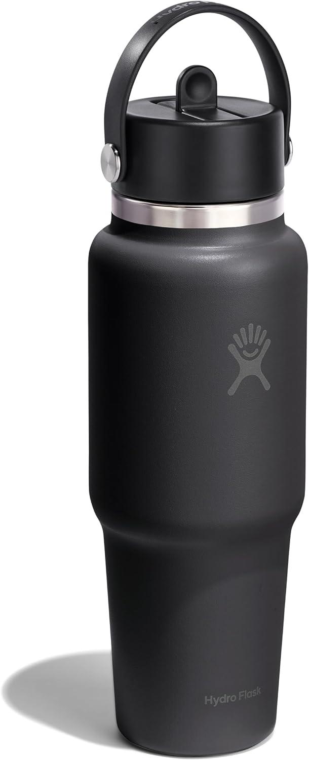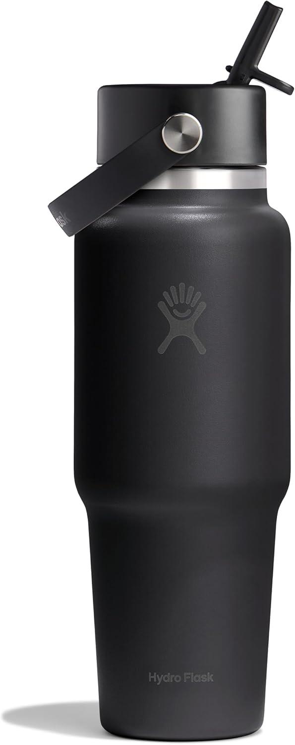 Hydro Flask Travel Water Bottle – Insulated Stainless Steel – Wide Straw Lid, Non Spill, Leakproof in 40 Oz Capri Blue(TONAL BLACK)