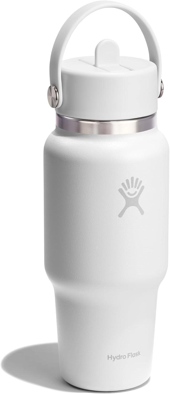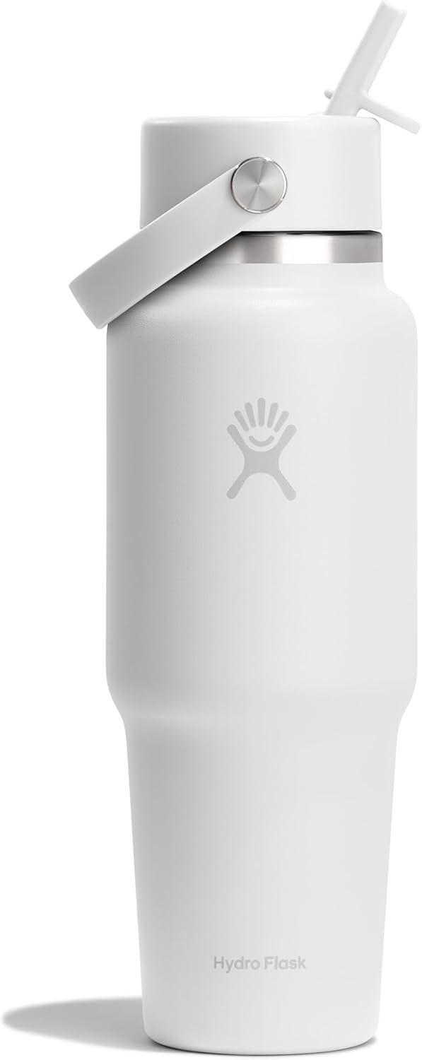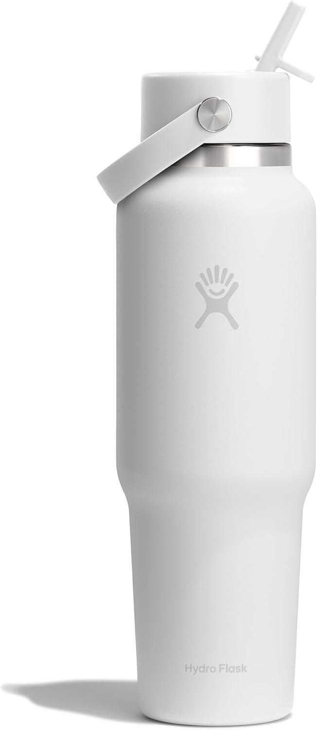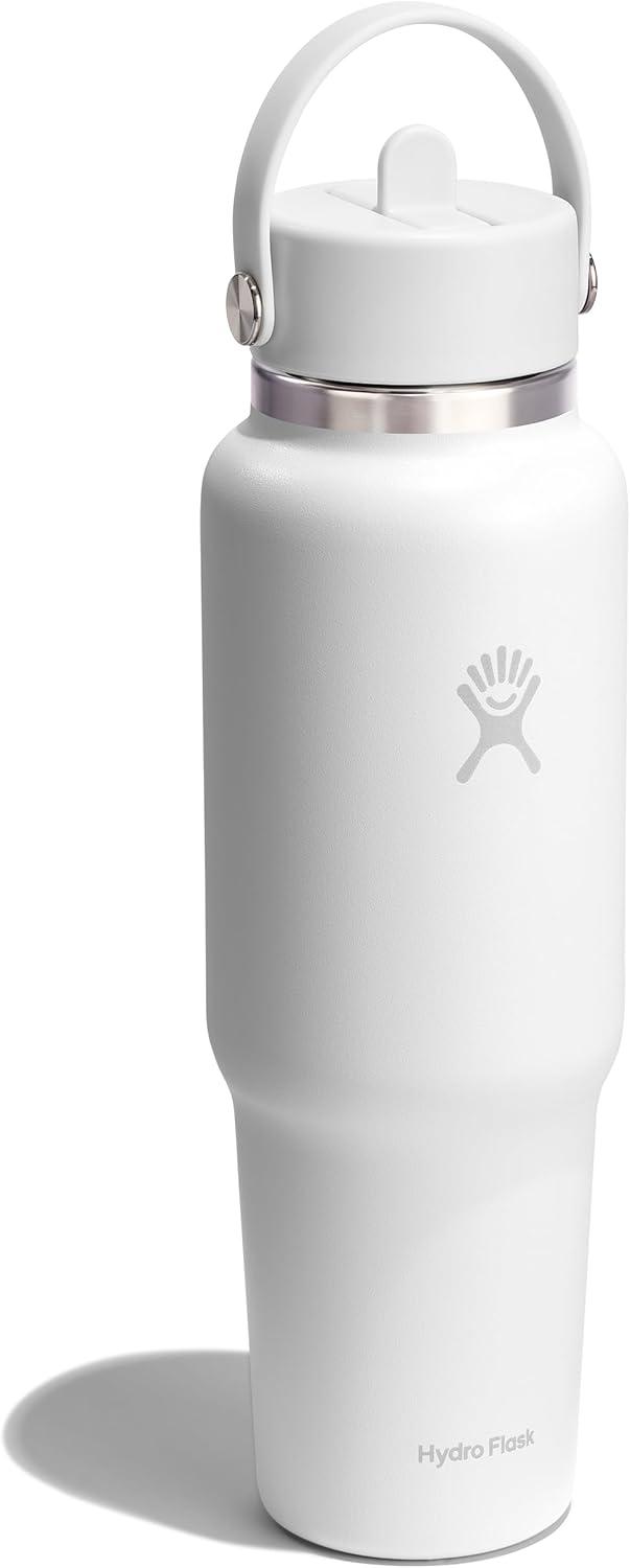 Hydro Flask Travel Water Bottle – Insulated Stainless Steel – Wide Straw Lid, Non Spill, Leakproof in 40 Oz Capri Blue(TONAL WHITE)