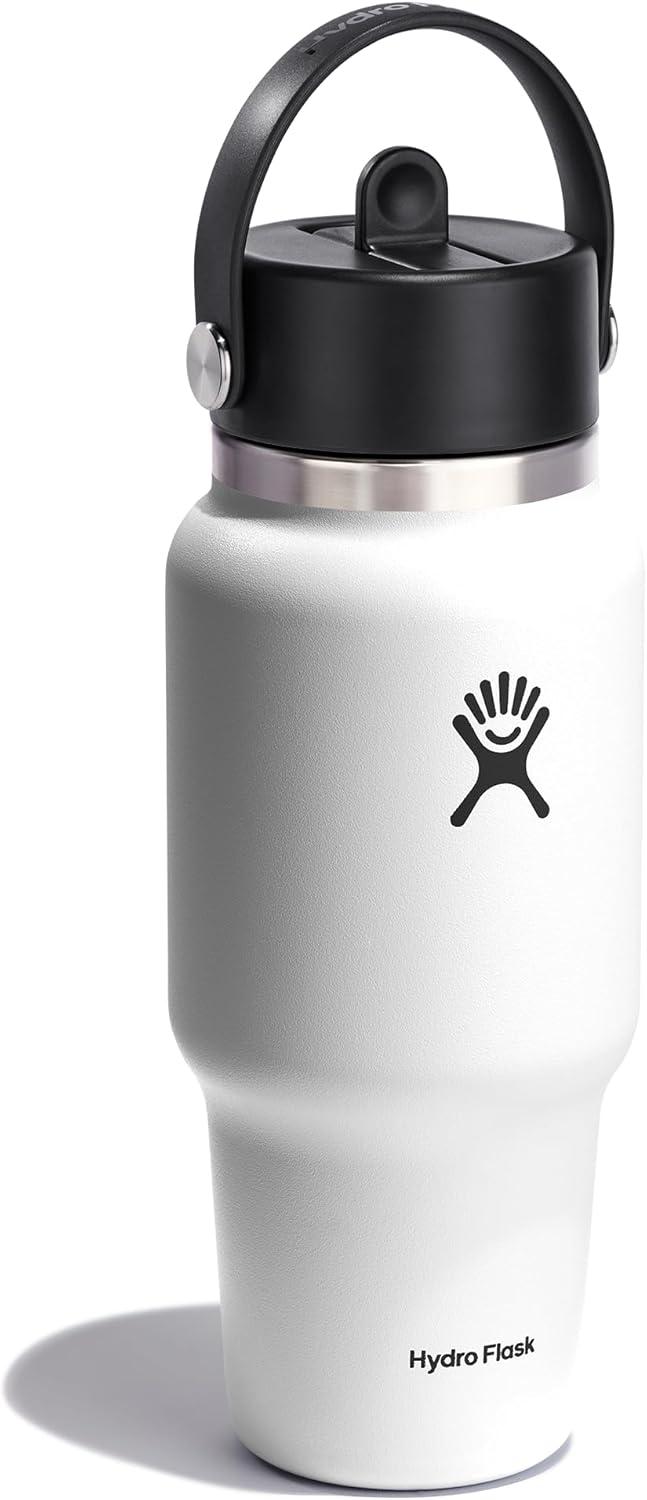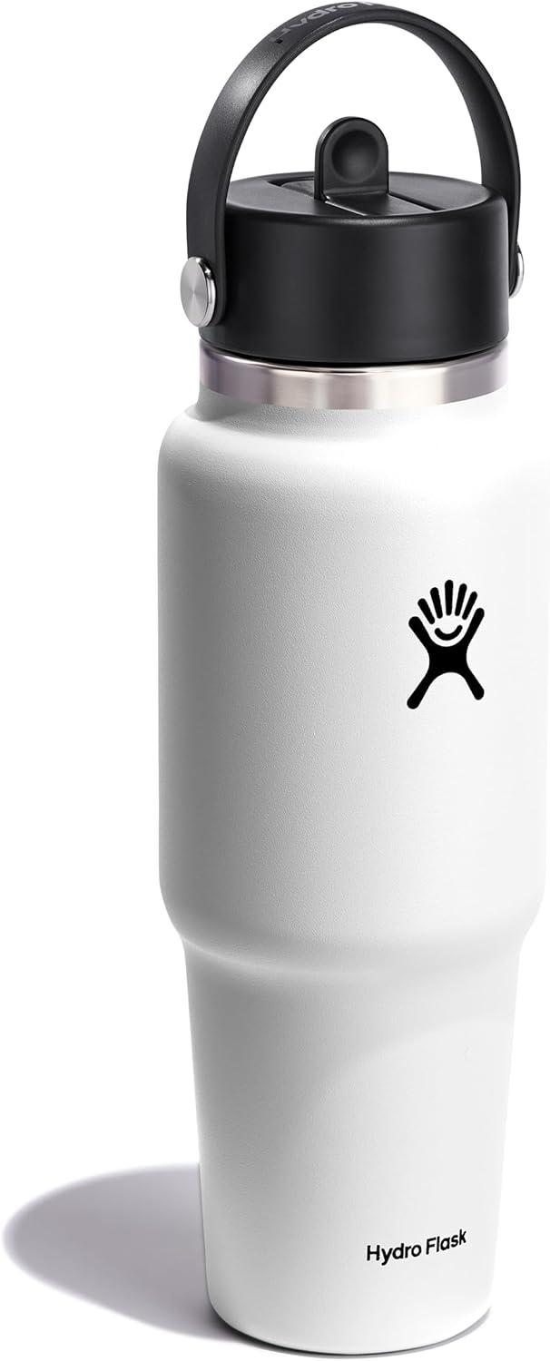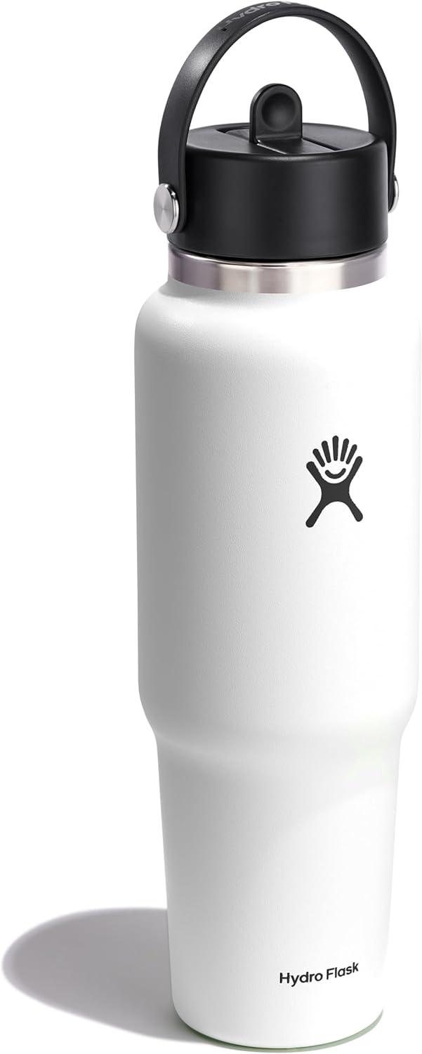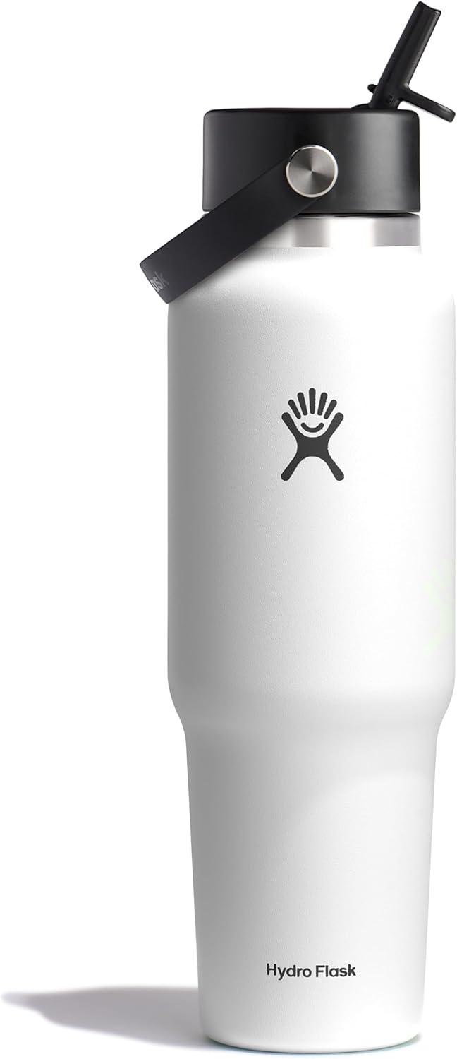 Hydro Flask Travel Water Bottle – Insulated Stainless Steel – Wide Straw Lid, Non Spill, Leakproof in 40 Oz Capri Blue(White)
