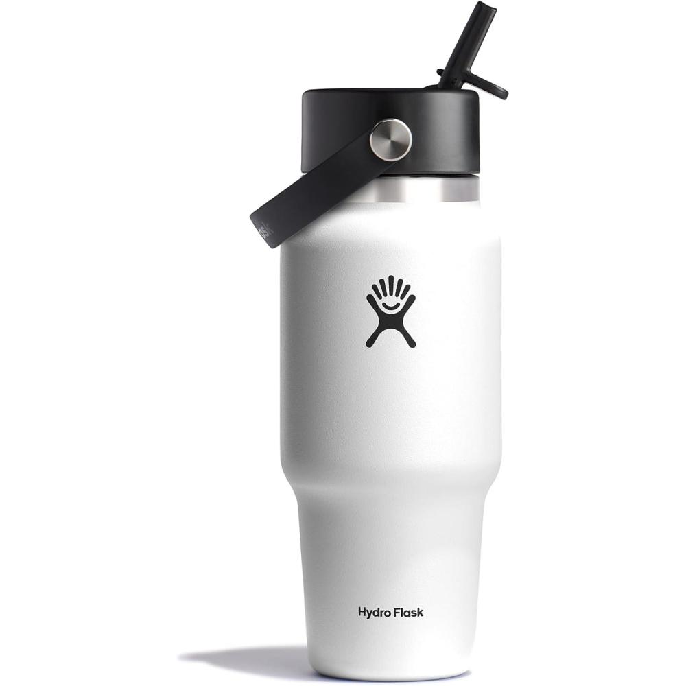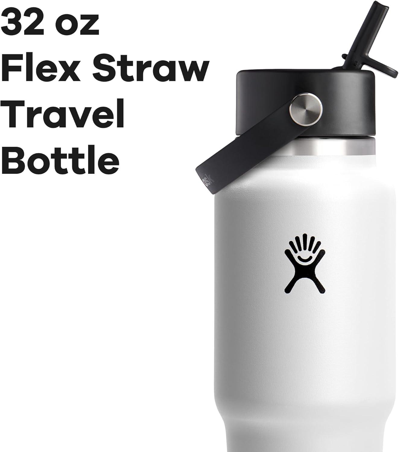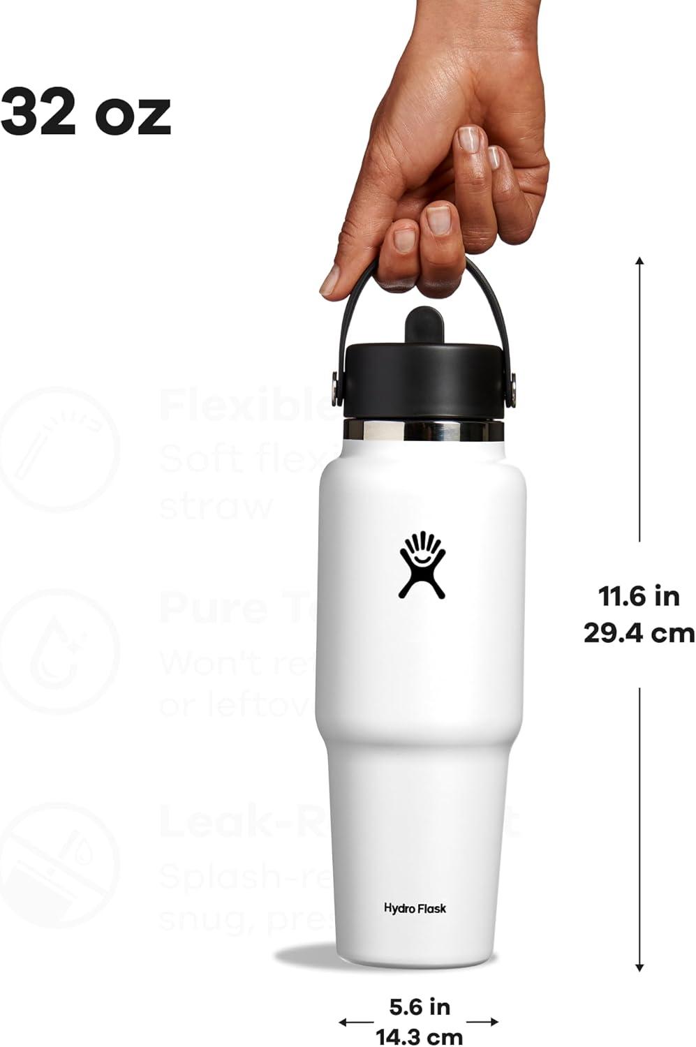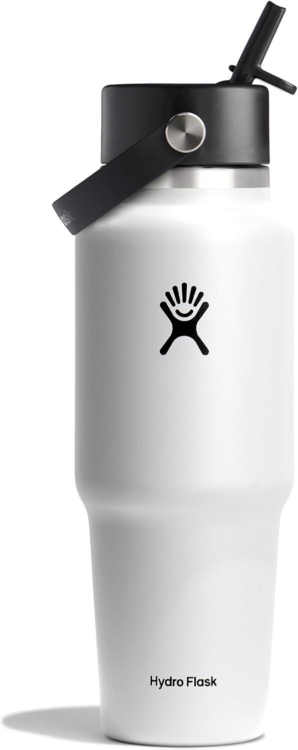 Hydro Flask Travel Water Bottle – Insulated Stainless Steel – Wide Straw Lid, Non Spill, Leakproof in 40 Oz Capri Blue(White)