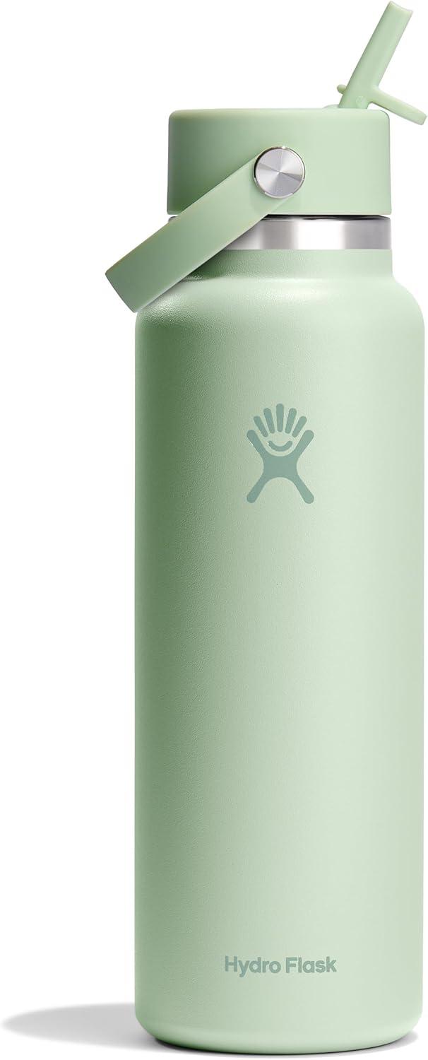 Hydro Flask Water Bottle – Insulated Stainless Steel – Wide Mouth Flex Straw Lid, Non-Spill, Leakproof and Refillable in 32 Oz Glimmer Blue(Aloe)
