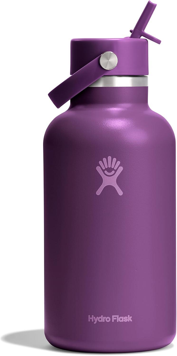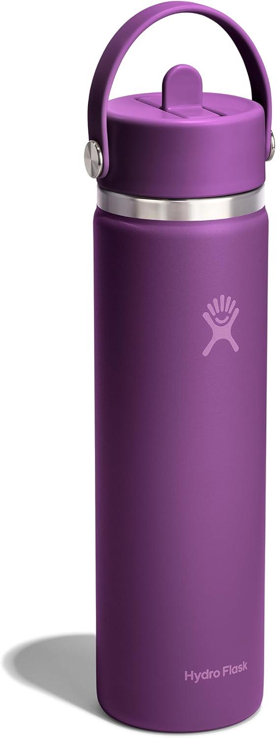 32 OZ MERMAID GREEN BOTTLE: Flip it and sip it with the Hydro Flask Wide Mouth insulated water bottle with closeable straw cap. With a comfortable, flexible handle, the leakproof straw cap is easy to open and close. Double-wall insulation keeps drinks cold up to 24 hours.